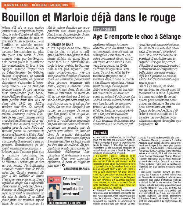 Régionale : Bouillon et Marloie dans le rouge. Biermonfoy respire !