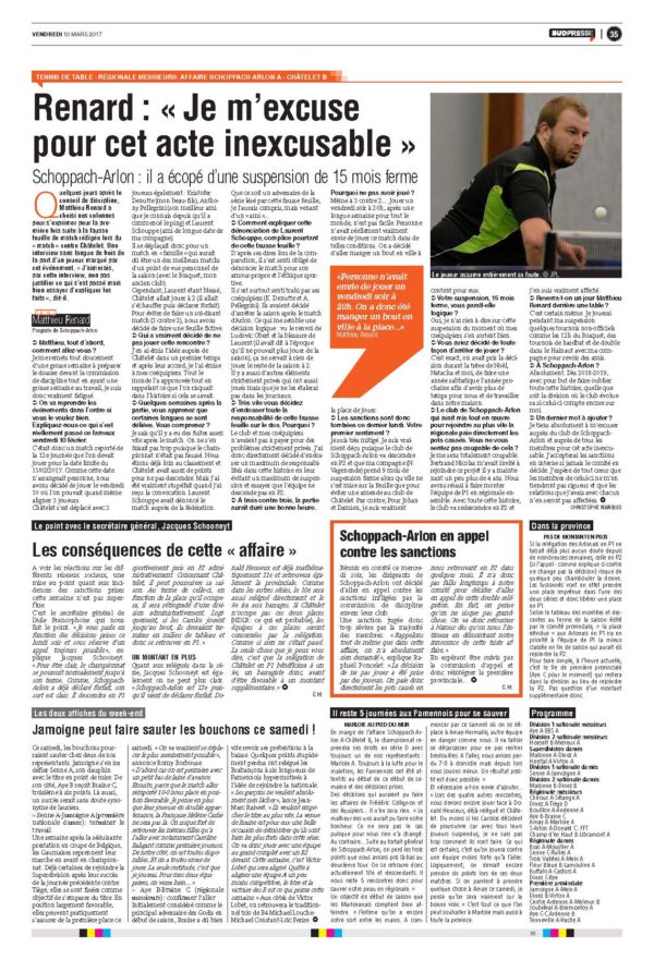 Mathieu Renard, joueur de Schoppach-Arlon s’explique : « Je m’excuse