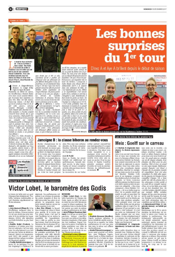 Les bonnes surprises du premier tour. Les tops 5 du premier tour en dames et en messieurs avec un joueur de Biermonfoy à l’honneur !!!