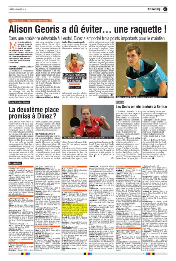 Tous les résultats de nos équipes en Nationale, Régionale, Provinciale. En Régionale, notre équipe A s’est imposée de justesse face au Logis.