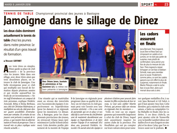 Ce week-end se sont déroulés les Championnats Provinciaux Jeunes à Bastogne. Les joueurs des clubs de Dinez et Jamoigne ont récolté la majorité des médailles !