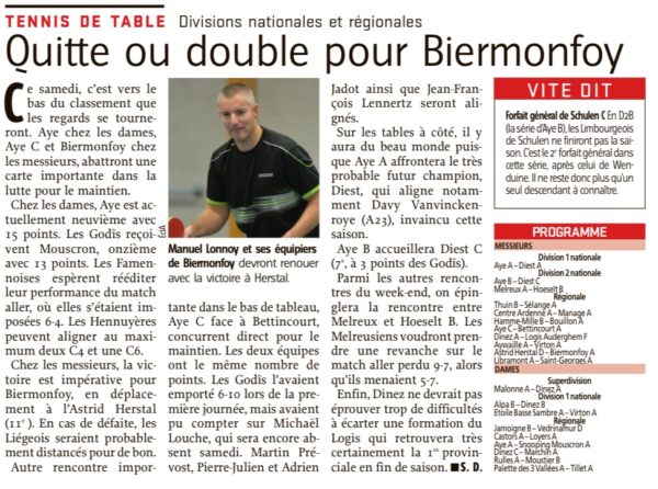 Ci-dessous quelques articles sur les championnats provinciaux jeunes et sur les simples seniors qui se dérouleront ce we ! Reprise du championnat ce we avec un déplacement important à l’Astrid Herstal pour notre équipe A.
