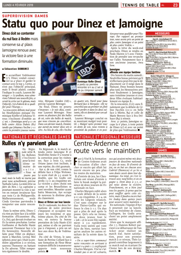 Tous les résultats de nos clubs en Nationale, Régionale et Provinciale. En Régionale, notre équipe A s’incline à Saint-Georges.