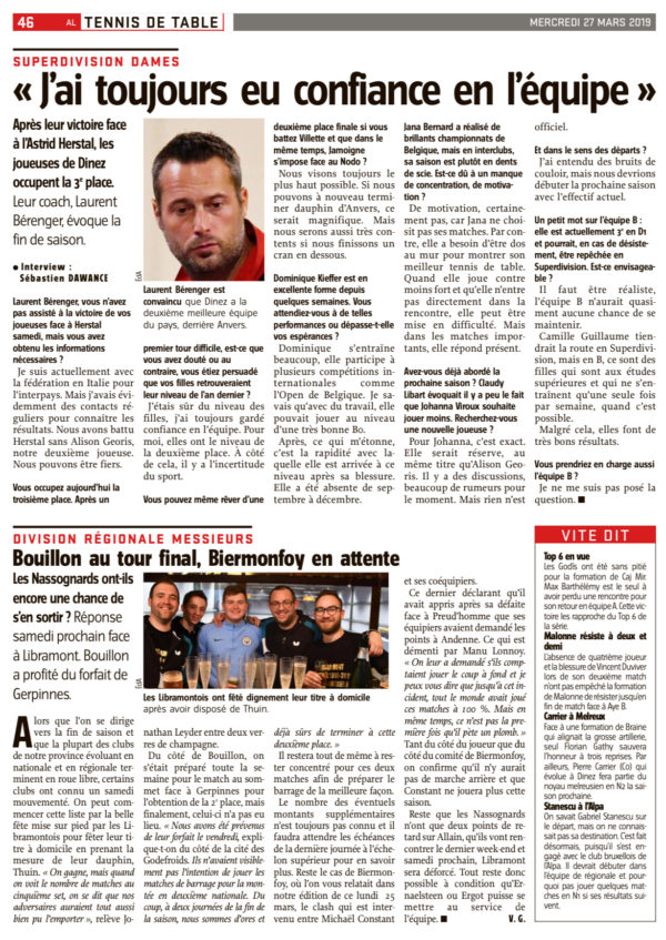 On parle beaucoup de notre club en ce moment dans les journaux. On aurait préféré que cela soit plus au niveau sportif qu’extra-sportif ! Il est important d’affirmer que les propos repris dans cet article ne sont pas ceux de Manu Lonnoy !!! Carte rouge pour Vincent Goffinet !