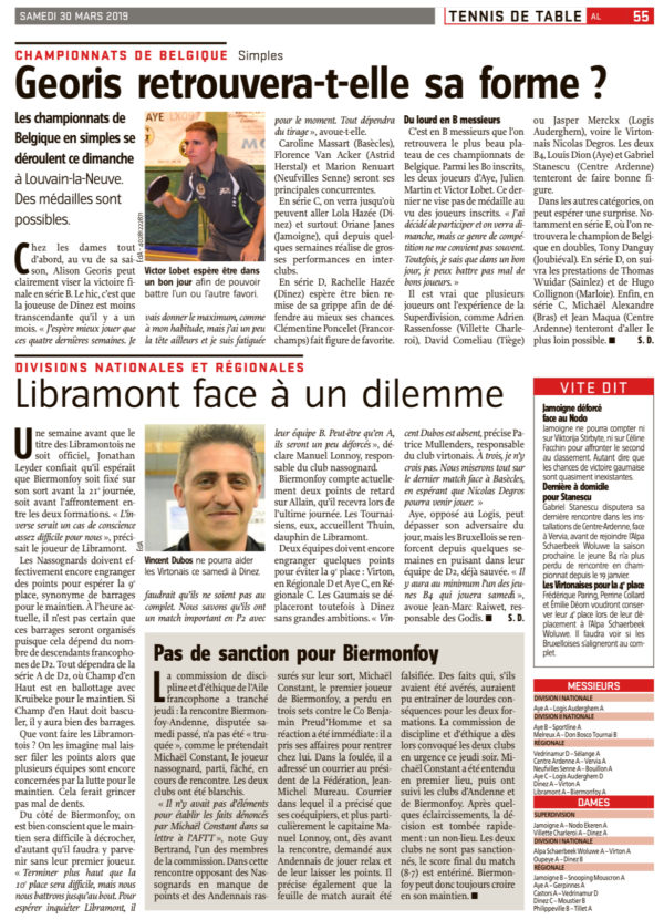 L’Avenir du Luxembourg – La Meuse du Luxembourg 30/03/19